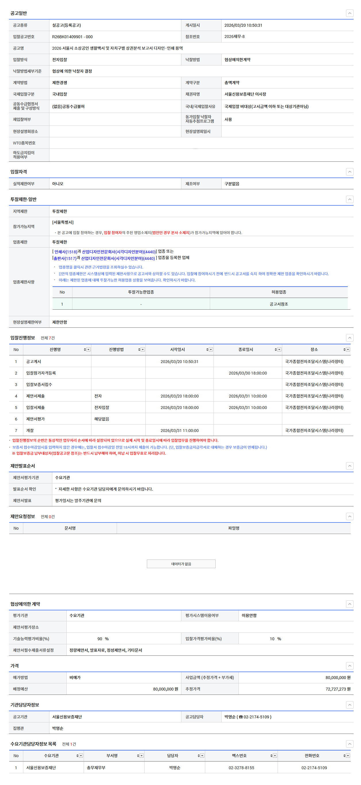 [서울신용보증재단] 2026 서울시 소상공인 생활백서 및 자치구별 상권분석 보고서 디자인·인쇄 용역