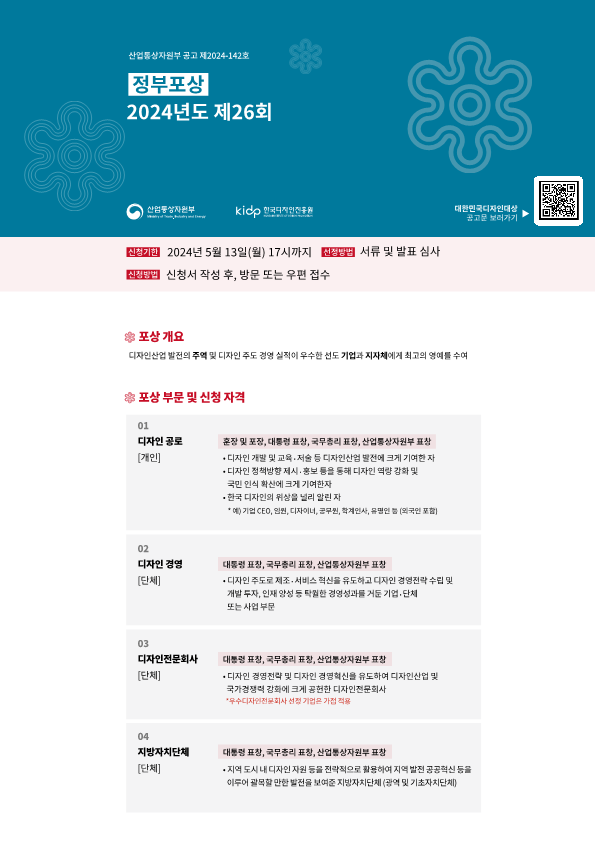2024년도 제26회 대한민국디자인대상 포상계획 공고